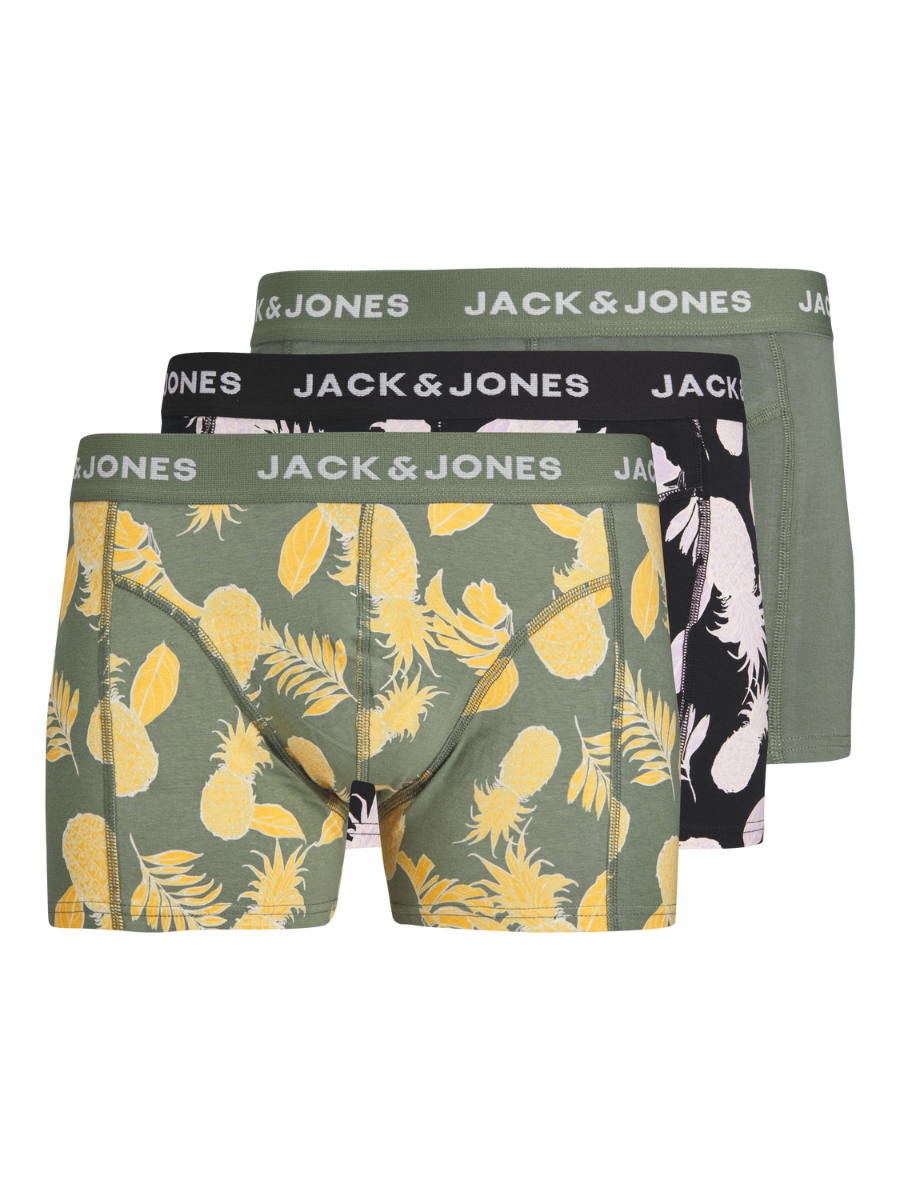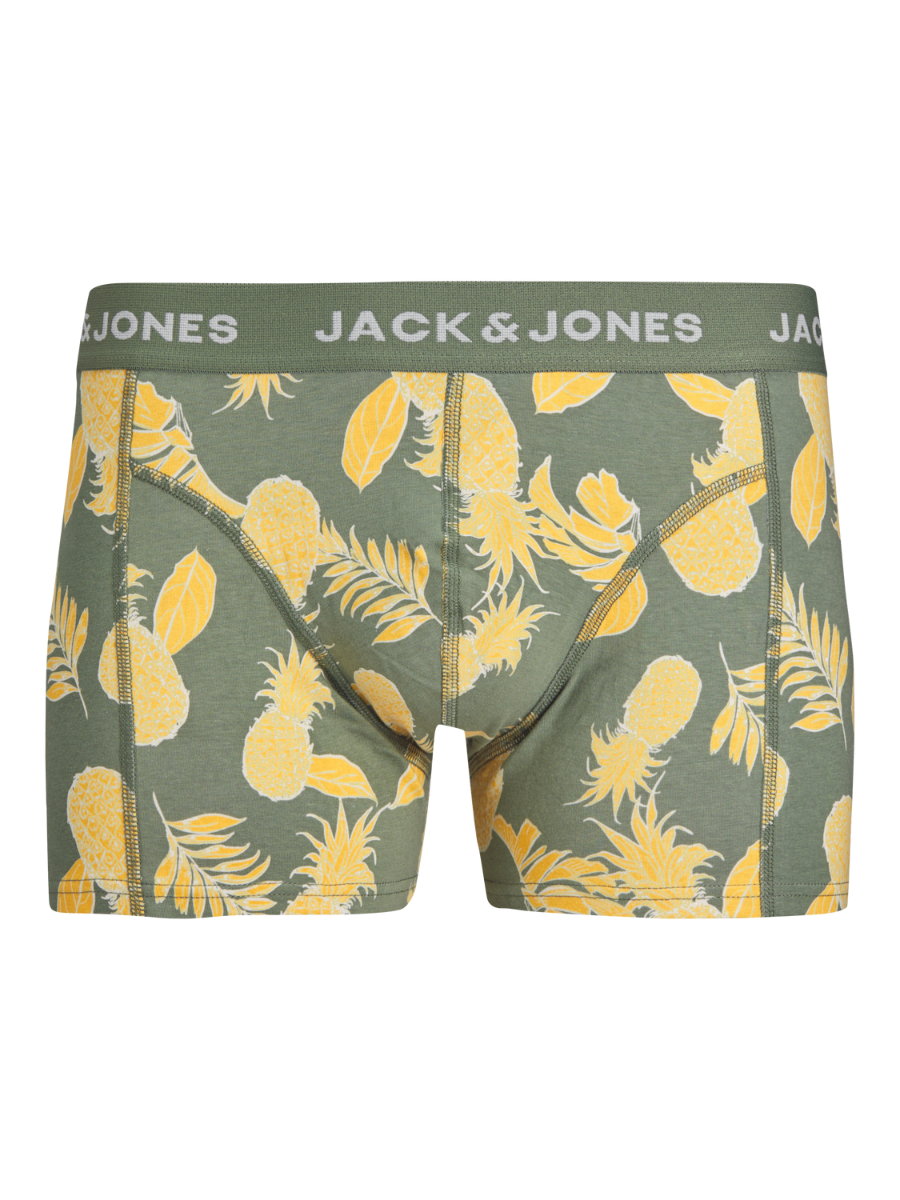 De boxershorts van Jack&Jones zijn gemaakt van heerlijk zacht katoen met stretch, waardoor er een perfecte pasvorm ontstaat en ze erg comfortabel dragen. De elastische tailleband zorgt er daarnaast voor dat je short de hele dag goed blijft zitten. De boxershorts worden verkocht in een handige 3 pack. Dit 3-pack bestaat uit een groene onderbroek en 2 onderbroeken met een leuke print.