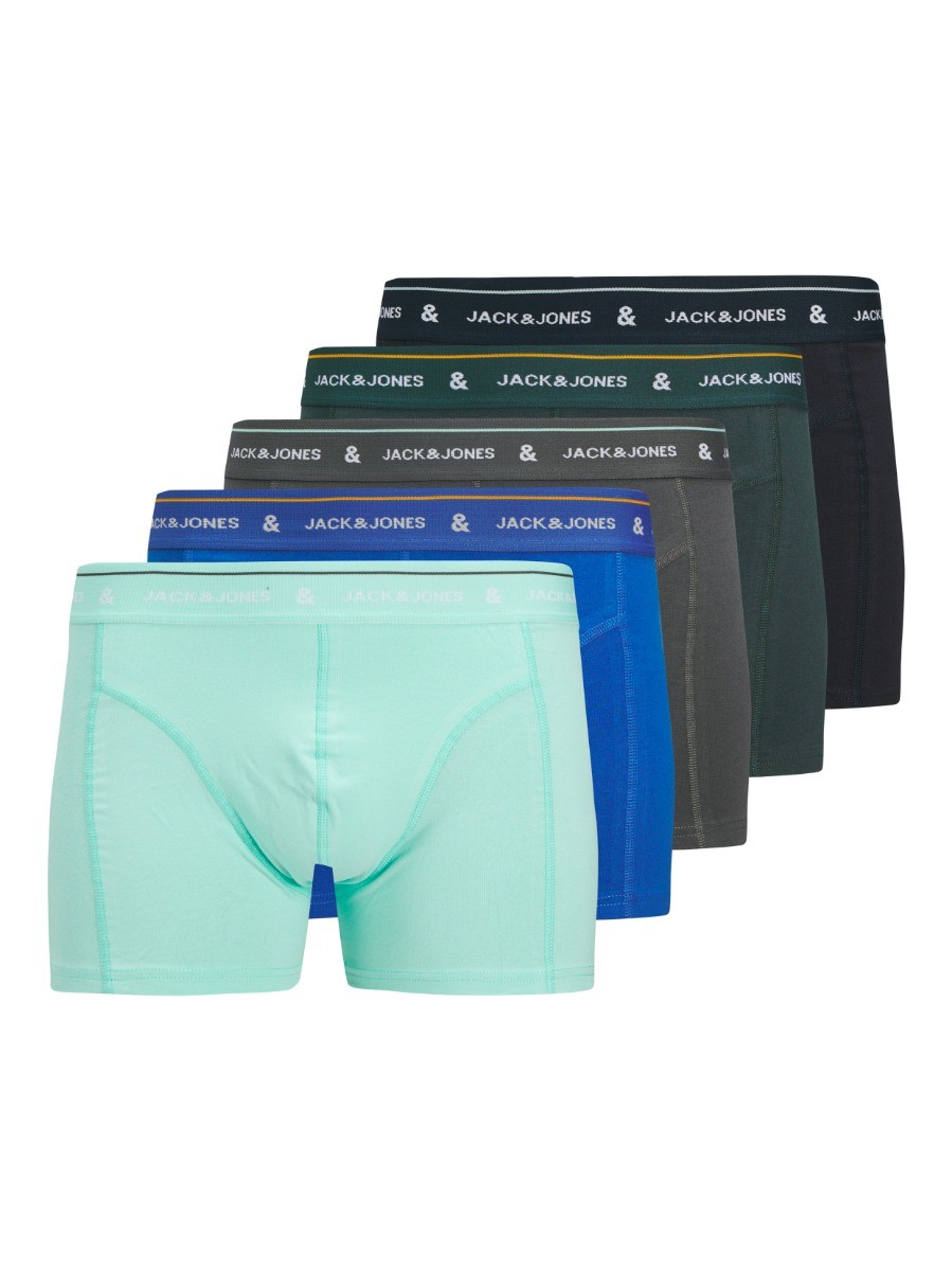 Jack&Jones Heren Jacron Solid Trunks Boxershort 5-pack Asphalt zijn nauwsluitend en net wat korter dan boxer briefs. Hierdoor bedekken ze iets minder van het bovenbeen. Jersey is een zachte en rekbare stof die zorgt voor comfort. De boxershorts hebben een elastische tailleband.