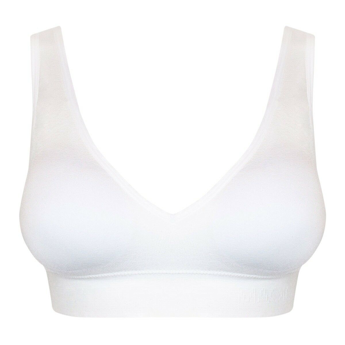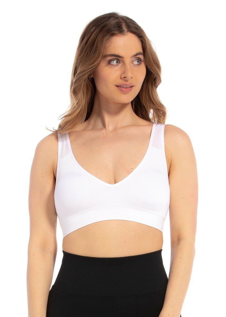 De witte Comfort Plunge BH van MAGIC Bodyfashion heeft een laag uitgesneden V-hals waardoor een mooi decolleté ontstaat. De beugelloze bh is voorzien van uitneembare pads en geeft precies de steun die je nodig hebt. De brede schouderbanden gaan pijnlijke druk tegen en daarnaast bevat de bh geen rugsluiting voor optimaal comfort!