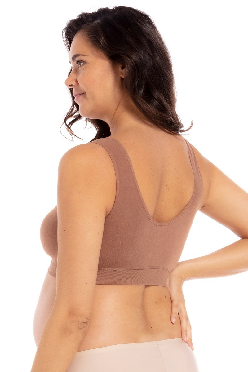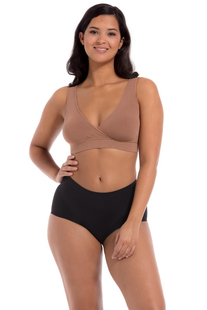 De Bamboo Soft Bra is comfortabel, doordat deze geen beugel en rugsluiting bevat. De brede band, onder de cups, zorgt voor support. De bh is stijlvol afgewerkt met een V-hals, hierdoor kan de bh ook gedragen worden als zwangerschaps- of voedings BH.