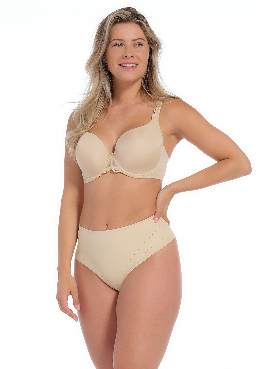 De MAGIC Bodyfashion Dream Shaper Thong voelt zacht aan voor ultiem comfort. De gelijmde dubbele lagen stof zorgen voor een stevige vormgeving van je onderbuik en rug. De Dream Shaper Thong is gemaakt van milieuvriendelijk gerecycled polyamide, ontworpen met laser gesneden gaatjes, voor ademend vermogen en een modern design. De string heeft een katoenen kruisje voor comfort en hygiëne en een naadloze afwerking.