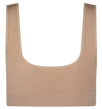 Deze beige bh zonder sluiting biedt lichte ondersteuning en een gladmakend effect met een comfortabel draaggevoel. De iets bredere banden zorgen voor extra comfort, terwijl het zachte, rekbare materiaal soepel meebeweegt en subtiel glanst.