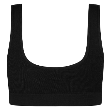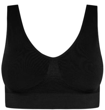 Deze zwarte bh zonder sluiting biedt lichte ondersteuning en een gladmakend effect met een comfortabel draaggevoel. De iets bredere banden zorgen voor extra draagcomfort, terwijl het zachte, rekbare materiaal soepel meebeweegt en subtiel glanst.