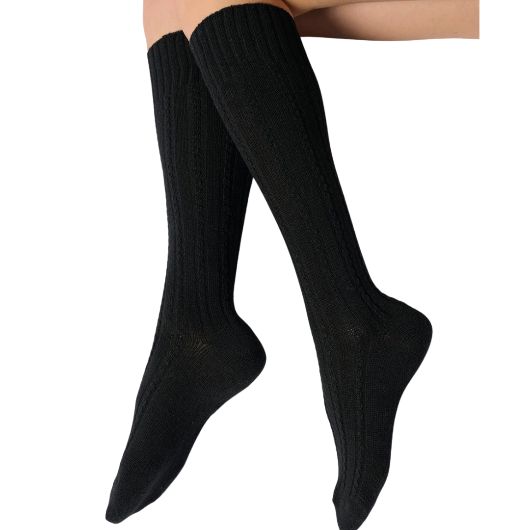 De Nancy kniekousen van Oroblu zijn perfect voor een stijlvolle en comfortabele look. Dankzij de hoogwaardige mix van wol, viscose, polyamide, cashmere en elastaan voelen ze zacht aan en blijven ze de hele dag goed zitten. De diepe zwarte kleur maakt ze veelzijdig en makkelijk te combineren met iedere outfit.
