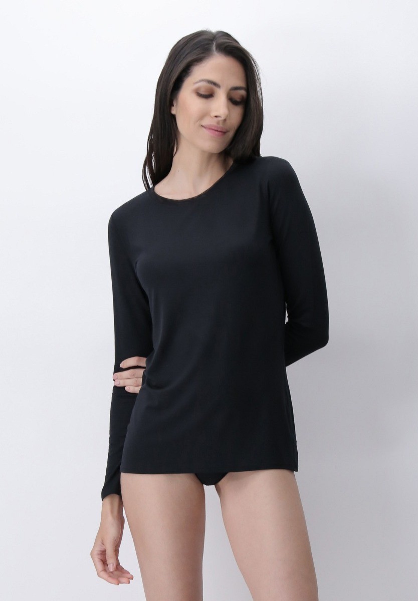 Het Oroblu Dames Perfect Line Modal - T-Shirt Long Sleeve is erg licht en is gemaakt van heel zacht stretch Micromodal. Het materiaal zorgt voor een perfecte pasvorm. Het shirt is afgewerkt met tule langs de halslijn. Ideaal om zo te dragen of onder een jasje.