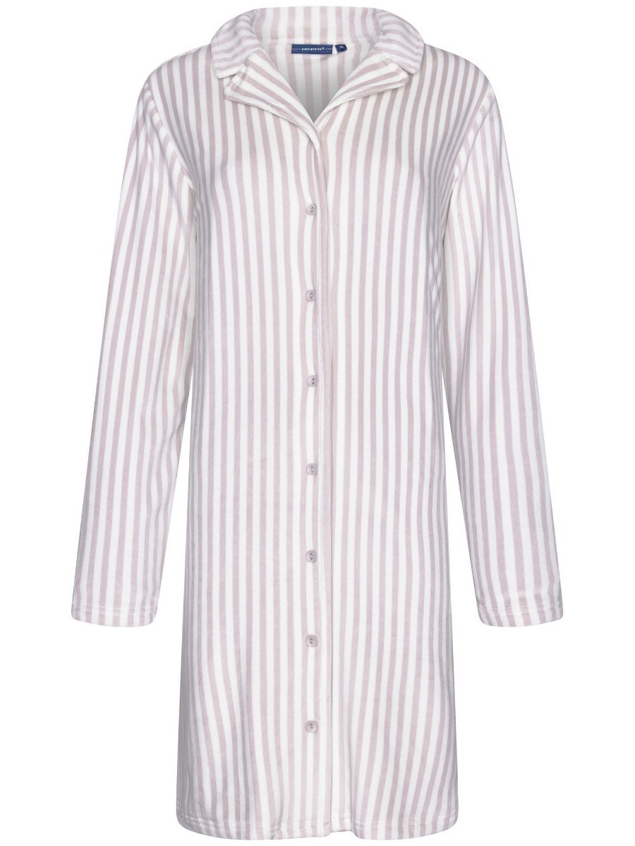 In deze nachtjurk van Pastunette ga jij ongetwijfeld veel comfortabele nachten tegemoet. De nachtjurk heeft een licht roze kleur met een strepen print. De nachtjurk heeft een lange mouw, v-hals met knoopjes en is gemaakt van 95% polyester en 5% elastaan. De zachte en fijne stof zorgt voor een comfortabel gevoel op je huid. De nachtjurk heeft een lengte van 95 cm.