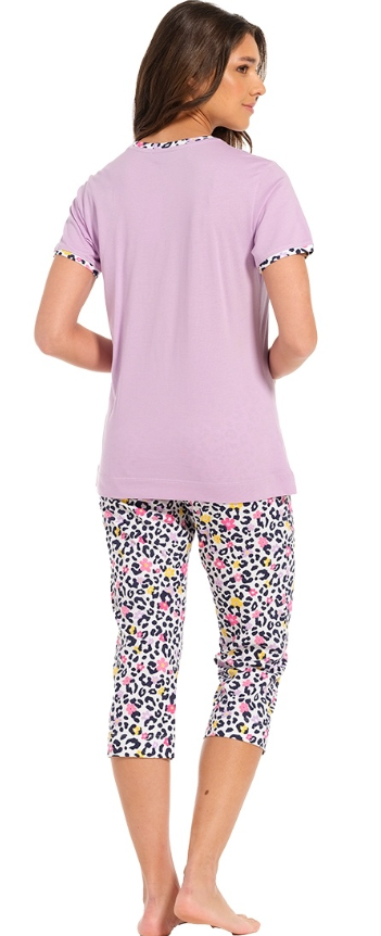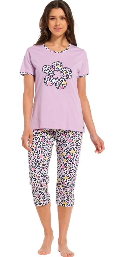 In deze Pyjama Capri Pants van Rebelle ga jij ongetwijfeld veel comfortabele nachten tegemoet. De Pyjama heeft een lichtpaarse kleur met een leuke print. Het shirt heeft korte mouwen, ronde hals en de broek heeft een elastische tailleband en komt tot over je knieën. De zachte, gladde stof ademt goed en zorgt voor een comfortabel gevoel op je huid.
