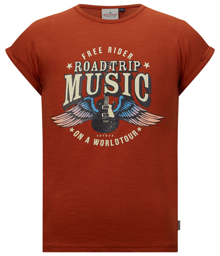 Dit leuke t-shirt van Retour Jeans is perfect voor alle stoere meiden die van muziek houden! Het rode shirt met korte mouwen en ronde hals heeft een regular fit. Op de voorkant van het t-shirt vind je een toffe opdruk. Naast dat het shirt er superstoer uitziet, draagt deze door de katoenen stof ook nog eens erg comfortabel.