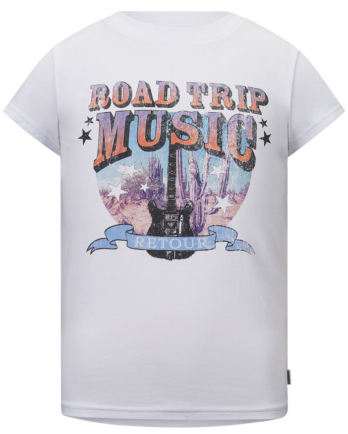 Dit shirt van Retour Jeans is speciaal voor alle stoere meiden die van muziek houden! Het shirt met korte mouwen en ronde hals heeft een regular fit. Op de voorkant van het t-shirt vind je een toffe opdruk in mooie kleuren. Door het zachte en rekbare katoen draagt het shirt ook nog eens erg comfortabel!