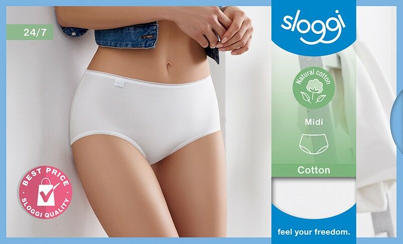 Voel je ieder uur van de dag comfortabel met de 24/7 Cotton serie van Sloggi! Je hebt geen last hebt van irriterende of schurende randen. De katoenen stof met stretch is ademend en voelt heerlijk zacht aan. De slip is dan ook erg elastisch en is zo licht dat deze aanvoelt als een tweede huid. Bovendien heeft de slip een mooi randje aan de bovenkant en is hij afgewerkt met een katoenen kruisje!
