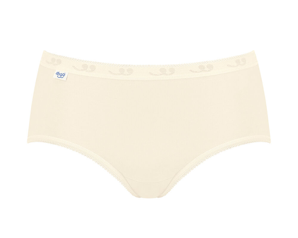 Voeg de Basic Midi toe aan jouw garderobe. De Sloggi Basic serie is de absolute bestseller onder ons dames ondergoed en daarom perfect voor jou! Het midi model valt tot op de heup en heeft geen naad aan de achterzijde. Dankzij het zachte katoen, in combinatie met een kleine hoeveelheid elastaan, draagt de ivoorkleurige slip zeer comfortabel. De elastische tailleband zorgt daarnaast voor nog meer comfort gedurende de dag. Zoek je een slip voor iedere dag, dan ga je voor de Sloggi Basic Midi! Wij raden je aan een maat groter te bestellen dan je gewend bent.