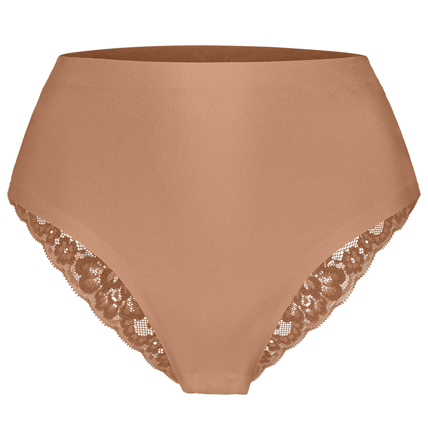 Deze High Waist Lace Brazilian uit de vernieuwde Secrets serie van Ten Cate staat iedereen geweldig! De Secrets zijn onzichtbaar en daarom ideaal voor bijvoorbeeld onder een strakke jurk. De randen zijn geplakt en kruipen niet omhoog. De brazilian heeft een achterzijde van kant, valt in de taille en loopt tot halverwege de bil. De hazelnootbruine taille slip heeft geen irriterend wasetiket maar een geprinte wash seal en heeft bovendien een katoenen kruisje voor extra comfort! Combineer met een bijpassende top voor de complete look!